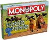 Играта на Монополи от Winning Moves ще зарадва любителите на коне и понита. Прекосете игралното поле и инвестирайте в сергии и конюшни. Купете си барокови коне или породисти понита. Спестете пари, за да може да отидете до ковача и ветеринаря. Открийте нови възможности с картите моркови и ябълки, където може да се окажете собственик на чисто нова екипировка или да получите безплатен урок по езда. Снабдете се с Пасо Фино, Апалуза и Фризийски кон или ще дължите наем на собственика им. Забавлявайте се, търгувайте, вземете любимите си породи коне и понита и се станете победител в играта на Монополи. ...