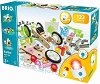 Развивайте въображението на детето си с конструктора от "Brio"! Той е изработен от дърво и здрава пластмаса. Комплектът включва 4 диодчета с батерии към тях, дървени елементи за сглобяване, инструменти и инструкции с примерни модели на колички, роботчета и много други предмети. След като бъдат сглобени, малчуганът ще може да играе със своите нови инженерни творения, или да ги постави на видно място и да се хвали на приятелите си! ... |