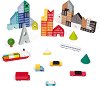 Станете архитект на собствения си град с този страхотен комплект 2 в 1 от Janod. Комплектът включва пъзел от картон с размери 60 x 60 cm, който служи като основа, и 60 дървени елемента, оцветени с безвредни бои на водна основа. Сглобете сгради и превозни средства по ваше желание, създавайки уникален градски ландшафт. Играта е идеална за развитие на координацията око-ръка и пространственото мислене. Комплектът идва с практична опаковка с дръжка за лесно съхранение и транспорт. ... |