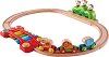 Влакчето с релси от "HaPe" ще зарадва всеки малчуган. С него детето ще може само да построи ЖП линия от дървени релси, а по нея да "управлява" влакова композиция. Частите на комплекта позволяват железопътната линия да бъде построена в интересна форма с препятствия, които издават забавни звуци или изскачат маймуни! Влакчето в комплекта е с фигурки на животни, а вагоните се свързват помежду си посредством магнити, благодарение на което могат да се добавят и още вагони. Комплектът включва релси, ксилофон, храсти с изскачащи маймунки и влакче с 3 вагона. Играчката е изработена от дърво и е боядисана с ... |