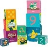 Комплектът е подходящ за деца над 18-месечна възраст и се състои 10 различни по размер, и дизайн цветни кубчета. Те са изработени от здрав материал и имат различна илюстрация на всяка от страните си. С тях детето ще се запознае с различните цветове, някои животни и ще учи числата от 1 до 10. Когато малчуганът ги подреди по големина, ще се образува пирамида която от едната страна изобразява метър за измерване. Кулата е с височина 110 cm. ...