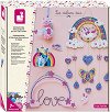 Направи сама красиви декорации с творческия комплект от Janod. Той е подходящ за момичета над 7-годишна възраст. Състои се от множество компоненти, с които можеш да наравиш декорация на еднорози, капан на сънища, коте направено от помпони, декорация на цветна дъга с надпис и 2 брошки. Инструкциите в кутията ще те упътят за направата на всяка една декорация, а след това резултатите са изцяло в твоите креативни ръце. Избери дизайн за своите декорации, моделирай ги по свой вкус, а с готовите декори украси стаята си. Творческият процес ще развие сръчността, креативността и концентрацията на вашият малчуган. Размерите на ... |