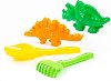 Детският комплект за игра с пясък е чудесен за игра на плажа или в пясъчника в парка. Той се състои от гребло, лопатка и 2 формички на динозаври за игра с пясък. Цветовете на комплекта са ярки и непременно ще се харесат на малчуганите! Комплектът е подходящ за деца над 1-годишна възраст. Той е изработен от пластмаса и е с размери, съобразени с малките детски ръчички. Важно! Цветът на продукта може да се различава от показания на снимката. При поръчка ще го получите в цвят на случаен принцип. ... |