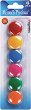 Комплектът съдържа 6 кръгли магнита с диаметър ∅ 30 mm в различни ярки цветове. Те са подходящи за закрепване на бележки, снимки и документи върху магнитни дъски, хладилници или метални повърхности. Магнитите осигуряват стабилно захващане и са практично решение за дома, офиса или училището. Цветният им дизайн придава свеж и подреден вид на всяко работно пространство. ...
