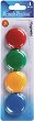 Комплектът съдържа 4 кръгли магнита с диаметър ∅ 40 mm в различни ярки цветове. Те са подходящи за закрепване на бележки, снимки и документи върху магнитни дъски, хладилници или метални повърхности. Магнитите осигуряват стабилно захващане и са практично решение за дома, офиса или училището. Цветният им дизайн придава свеж и подреден вид на всяко работно пространство. ...
