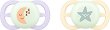 Залъгалките Ultra Soft на Philips Avent осигуряват грижа и комфорт за чувствителната кожа на бебето. Те са специално създадени, за да намалят риска от кожни раздразнения благодарение на технологията Soft Shield, която следва естествените извивки на лицето и предпазва бузките от натиск. Заобленият и гъвкав предпазител осигурява максимална нежност, като оставя кожата да диша и се чувства естествено суха и спокойна. Залъгалките се отличават и с устойчив дизайн, изработени от 80% материали на растителна основа*, което намалява въздействието върху природата, без компромис с качеството. Ортодонтският силиконов биберон е ... |