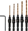 Свредлата с фрезенк на Raider от серията Power Tools са практично решение за пробиване и зенкероване в една стъпка. Подходящи са за работа с мека и твърда дървесина, ПДЧ, MDF и други дървесни материали, като осигуряват чисти и точни отвори с гладък завършек. Идват в комплект от 5 броя с размери ∅ 5, 6, 8, 10 и 12 mm и покриват най-често използваните приложения в дърводелството и мебелното производство. Свредлата разполагат с 1/4" шестостен захват, съвместим с повечето електрически и акумулаторни бормашини, както и с бързозахващащи патронници. Комбинираният дизайн с вграден фрезенк позволява пробиване и ... |