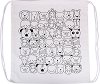 Мешката от KPC е изработена от 100% памук в бял цвят и илюстрация на животни. Подходяща е за боядисване с текстилни бои, маркери и контури. Допълнително може с помощта на лепило или пистолет за горещо лепене може да го украсите с различни апликации от филц, плат и фоам, мъниста, пайети и други декоративни елементи. Мешката е оборудвана с връзки за през рамо и стандартно стягащо се с презрамките гърло за пренасяне на малки принадлежности. Има правоъгълна форма с размери 38 x 42 cm. За да се осигури добро попиване на текстилните бои е добре предварително да се изпере при температура до 30°C без препарат и ...