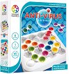 Анти-вирус на SmartGames е игра подходяща за деца над 8-годишна възраст. Целта е да бъде елиминиран червеният вирус. За да започнете играта, изберете предизвикателство и наредете елементите както е показано в него. Чрез приплъзване на елементите, извадете червения вирус извън игралното поле. Елементите могат да се движат само хоризонтално или вертикално и ал или да ги въртите. В някой случай ще се наложи да придвижите няколко елемента като група. Може да местите всички цветни елементи, но белите не трябва да се движат. Всяко предизвикателство има само едно решение. За подробните условия на играта, ще ви помогне ...