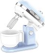 Какви процеси може да бъдат извършвани с електрическия миксер? Миксерът е кухненски уред, в който се смесват различни продукти. Миксерите биват с различна големина и различни модели. Малкият портативен миксер се състои само от две тела за разбиване. Към него не е предвидена купа. Тя може да се купи отделно. Средно големият миксер се използва с поставка и е снабден с купа. При него се използват главно две скорости на разбиване. Третият тип миксер е големият, с поставка и купа. В този миксер може да се прибавя мазнина към брашното. Към него може да има и допълнителни приставки - бъркалка за твърди и меки теста, за яйца, ... |