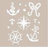 Шаблонът от "CADENCE" е с дизайн на котви, моряшки възел и корабен рул. Той е изработен от здрав и пластичен материал в полупрозрачен цвят. Леката му структура позволява да се огъва и да се използва не само върху равни и гладки повърхности, но и върху неравни основи. С него може да добавите финален щрих към всеки подарък, картичка, албум, покана или други скрапбукинг проекти. Той може да бъде използван в измайсторяването на декорации за дома и декориране на платна, картон, дърво, камък, текстил и други. Също така може да се употребява при използване на смесени техники. Шаблонът е предназначен за работа с ... |