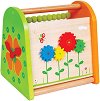Дървената образователна играчка от "Lelin Toys" предлага на малчуганите 4 активни занимания. Така докато се забавляват, малките изследователи ще могат да учат цветовете и формите, да упражняват смятане, да се научат да познават часовника и да усъвършенстват логиката си и координацията си между очи и ръце. Играчката съдържа 4 игри - зъбчати колела, нарисувани като цветя, часовник чиито стрелки детето може да мести, сметало на 4 реда и форми за сортиране. Изработена е от дърво и е с приблизителни размери 18.5 / 20.8 / 21 cm. Подходяща е за деца над 1 година. ... |