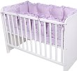 Обиколникът е част от серията Happy Friends, в която ще откриете още бебешки и детски продукти по темата. ... Обиколникът за бебешко легло на Lorelli осигурява спокойствие на родителите, че бебето им е в безопасност по време на сън и игра в креватчето. Декорираният му десен и нежните цветове ще превърнат леглото на вашето дете в приказно място за почивка и игра. Калъфът на обиколника е изработен от 100% памучен ранфорс, а пълнежът е от 100% полиетилен. Благодарение на връзките, с които разполага, може да се закрепи бързо и лесно за предпазните решетки на креватчето. По този начин обиколникът обгръща част от вътрешната ... |
