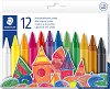 Комплект от 12 цвята восъчни пастели с наситен цвят. Те са с пластмасово тяло, предпазващо от зацапване на ръцете и счупване на пастела. Въртящ се механизъм изкарва и прибира писеца. Отговарят на стандарт на безопасност на детските играчки - DIN EN 71. ... |