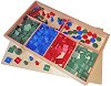 Няма някой, който в детството си да не е играл популярната игра "Не се сърди човече". Тя е любима на много поколения, затова класическият вариант от "Bigjigs Toys" ще се хареса на малки и големи. Комплектът се състои от игрално поле, зар и 16 пионки с 4 различни цвята. Всички компоненти в кутията са изработени от дърво и са оцветени с безвредни бои на водна основа. Правила на играта: В играта вземат участие от 2 до 4 играча. Всеки от участниците поставя четирите си пионки в поленце със същия цвят. Пръв започва играта участникът, който хвърли със зарчето цифрата 6. Пионките се придвижват напред с ... |