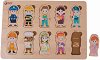 Детският дървен пъзел от "Classic World" се състои от подложка и 10 елемента с форма на човечета работещи различни професии. Подложката е с отвори, в които се поставят елементите. Когато фигурките са махнати, в отворите децата ще намерят имената на професиите изписани на английски език. Формите са големи и заоблени, подходящи за от малките неопитни пръстчета. Пъзелът ще помогне на децата да развият пространствения си усет, фината моторика и съобразителността. ... |