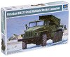 Умален модел на руска реактивна система за залпов огън - BM-21 Grad Multiple Rocket Launcher. БМ-21 Град е съветска реактивна система за залпов огън базирана на бойната машина БМ-21. Ракетната система е монтирана обикновено на шаси на „Урал-375Д“ или „Урал-4320“, което само по себе си представлява еволюция на катюшите. Системата е комбинация от бойна машина БМ-21 и неуправляема ракета M-21OF 122 mm. При залп може да изстреля до 40 снаряда, като максималната им далекобойност достига до 20.4 км. Бойната машина се задвижва от V-образен, 8 цилиндров бензинов двигател с водно охлаждане с мощност 180 к.с. Достига максимална ...