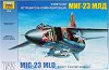 Мащабно умален сглобяем модел от пластмаса на съветски изтребител-бомбардировач - МиГ-23 МЛД. Брой части: 69 Размер на модела: 23.5 cm За да може да сглобите и залепите този макет, ви е необходимо лепило. Елементите на модела са направени от едноцветна пластмаса. Моделът може да се оцвети с боички. За МиГ-23 МЛД МиГ-23 е съветски многоцелеви изтребител с горно разположение на крилата с изменяема стреловидност. Създаден е в първата половина на 60-те години на XX-ти век от ОКБ "Микоян", когато бюрото пристъпва към разработката на изтребител, който да замени действащия дотогава МиГ-21. Специално за ... |