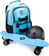 Комплектът е част от серията "Funbee", където ще намерите още спортни принадлежности за игра на открито. ... Комплектът от "Darpeje" се състои от скейтборд с дължина на дъската 56 cm, каска и раница, към която дъската може да се закача. Скейтбордът е удобен за придвижване в града и може да се носи лесно в ръка. Препоръчително е каращото дете да е екипирано с протектори. Характеристики на скейтборда: дъска: материал: PP дължина: 56 cm ширина: 14.5 cm релеф против плъзгане колела: материал: PU твърдост: 78А размери: 6 x 4.5 cm лагери: ABEC 7 шаси: алуминиево максимално тегло на ... |