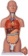 Анатомичният модел може да се използва за визуални примери в часовете по анатомия. Той има основа и 40 подвижни части. С него може да се изучава храносмилателната, дихателната, отделителната, половата, ендокринната и сърдечно-съдовата система. Има открит гръбначен стълб с 2 подвижни прешлена. Моделът разполага с части за сглобяване на мъжка и женска полова система. Лявата страна показва вътрешния разрез на полукълбата на мозъка, лицето и гърдите. Вътрешните органи могат да се премахнат от торса. С модела могат да се изучават теми като систематична анатомия, кръвообращение, храносмилане, жлези с вътрешна секреция, строеж и ... |
