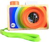 Дървената играчка от "Lelin Toys" ще предложи на детето много положителни емоции и забавление. Тя разполага с текстилна лента за ръка, благодарение на която малчугана може да носи любимата си играчка навсякъде. Обективът на фотоапарата може да се изважда и прибира - точно както при истинските камери. Поглеждайки през обектива, детето ви ще вижда повтарящи се образи, благодарение на стъклото, което наподобява тези на калейдоскопите. За да е безопасен за вашето дете, фотоапаратът е оцветен в безвредни бой и изработен със заоблени ръбове. ... |