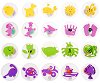 Използвайте печатите с разнообразни картинки, за да създадете завършващ акцент във вашите уникални картички и скрапбукинг проекти или просто да се позабавлявате с Вашия малчуган. За целта ще са Ви необходими различни мастила или боички, ако изберете течни мастила използвайте тампони с които да ги нанасяте. Печатите в комплекта са изработени от EVA пяна, като всеки от тях притежава удобна прозрачна пластмасова основа с дръжка, благодарение на която употребата му става изключително лесна. За още по-голямо улеснение върху тях има лепенки с наименованието на съответната картинка и стрелкичка, която показва горната част ...