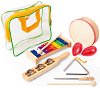 Комплектът ще развие музикалните дарби на децата. Той включва маракаси, барабан, триъгълник, чинел с дръжка, дървени палки, метална палка и ксилофон. Децата ще се научат да свирят на различни музикални инструменти и ще се забавляват. Частите на комплекта могат да се съхранят в чанта с дръжки. Свиренето на музикален инструмент спомага за подобряването на креативността, социално-емоционалните умения и въображението на подрастващите по интересен за тях начин. Размерите на чантата са 23 / 7 / 21 cm. ... |