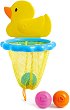 Играчката от "Munchkin" ще превърне моментите в банята в любима част от ежедневието на вашето мъниче. Комплектът се състои от 3 броя топки за игра и кош - патенце. Вашето дете ще се забавлява, докато се опитва с топките да улучи коша. Силните вендузи на коша се закрепят здраво за плочките в банята. Ярките им цветове привличат детското внимание и превръщат къпането в истинско забавление. Размерите на коша в разгънато състояние са 18 x 27 cm. ... |