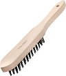 Телената четка на Tolsen е подходяща за почистване, отстраняване на боя, ръжда и други замърсявания. Разполага с дървена дръжка, осигуряваща сигурен захват и удобство и има снопове, изработени от стоманена тел. Телената четка е с дължина 28.5 cm. ... |