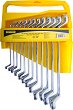 Двустранните ключове-лула на "Topmaster" са подходящи при ремонти на автомобили, велосипеди, сглобяване на мебели и други. Те са изцяло полирани и имат хром-никелово огледално покритие предпазващо ги от корозия. Изработени са от горещо щампована хром-вандиева стомана (CR-V), осигуряваща дълъг експлоатационен живот. В комплекта са включени 12 ключа тип лула, със захват от 6 до 32 mm и пластмасова стойка. Захват на ключовете: 6 x 7 mm 8 x 9 mm 10 x 11 mm 12 x 13 mm 14 x 15 mm 16 x 17 mm 18 x 19 mm 20 x 22 mm 21 x 23 mm 24 x 27 mm 25 x 28 mm 30 x 32 mm ...
