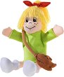 С куклата за театър Биби от Heunec могат да бъдат изиграни безброй сценарии и сюжети. Тялото ѝ е изработено от памучен текстил, а личицето ѝ е бродирано, което я прави напълно безопасна за по-малки деца, тъй като не съдържа дребни и лесни за поглъщане частици. Тя има широк отвор в долната част, който е предназначен за ръката на разказвача. Куклата е сертифицирана и отговаря на стандартите за безопасни играчки EN71 и ASTM. Размерът на куклата е 32 cm. Играчката може да се пере ръчно. ... |