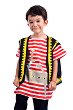 Никога не може да си сигурен в каква посока ще задуха вятъра и накъде ще те отведе, затова грабвай костюма на пират и се забавлявай до край. Парти костюмът на "Educo" ще въвлече детето ви във вълнуващото приключение, "превръщайки" го в безстрашен пират. Комплектът включва риза (с велкро закопчаване на гърба) на бели и червени ивици и с изрисувани саби. Тя се допълва прекрасно от черното елече с жълта ивица, типично в стила на кръстосващите морета и океани пирати. Но какъв пират ще е малкия ви разбойник ако няма превръзка за окото. Благодарение на ластика си, тя прилепва плътно до окото на детето като ...