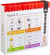 С комплекта от Eurekakids детето ви ще може да научи своите първи думи на английски език по-забавен начин. Той включва 80 пъзела, всеки от които по 2 големи части разделени в 4 категории. Малчуганът ще се запознае с животните и техните малки, емоциите, частите на тялото и основни думички на английски език. ... |