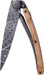 Джобният нож Esoteric на Deejo от колекцията Juniper Wood изобразява символи на тайни общества. Има лек и елегантен дизайн и е подходящ за ежедневна употреба. Изработен е от неръждаема стомана Z40C13 с черно титаново покритие за повече устойчивост. Разполага със здрава дръжка от дърво от хвойна с фини жилки. Притежава сигурна лайнерлок система за заключване. Ножът е снабден с клипс за колан за лесно и сигурно съхранение. Характеристики: дължина на острието: 9.5 cm дължина на ножа в затворено положение: 11 cm дължина на ножа в отворено положение: 20.5 cm дебелина: 9 mm материал на острието: неръждаема стомана ... |