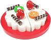 Кой има рожден ден? Ами какво е рожден ден без торта? Комплектът от Bigjigs Toys ще запълни нуждата от празничен сладкиш за децата! Той е подходящ за малчугани над 3-годишна възраст и ще стимулира въображението на вашето дете. Комплектът съдържа 6 парчета торта, 6 свещички, чиния и специално ножче за рязане на торта. Комплектът е изработен от дърво, боядисано с безвредни бои на водна основа. С него децата ще могат да играят на "готвач" или да включат комплекта в своя магазин. Всяко парче торта се съединява с останалите посредством велкро (лепящ цип), благодарение на която лесно ще може да ги разрежете с ... |