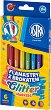 Флумастерите Glitter от серията Color' Peps на Maped се предлагат в комплект от разнообразни, ярки и интензивни цветове с брокатен и металиков ефект. Те са чудесен начин за развитие на въображението, креативността, фината моторика и творческото мислене на детето. С тях то ще може да твори, рисува, оцветява и вдъхва живот на всички идеи, които роди въображението му. Флумастерите разполагат с пластмасова капачка, на която има специално проектирани отвори, които позволяват преминаването на въздух. Благодарение на тази система мастилото в тях не изсъхва. Флумастерите оставят плътна и равномерна линия с дебелина 2.8 mm ... |