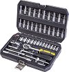 Гедорето на Topmaster е подходящо както за домашна, така и за професионална употреба. Инструментите са изработени от 50BV30 хром-ванадиева стомана, която осигурява дълъг експлоатационен живот и устойчивост на корозия и износване. Куфарът е релефно брандиран, със здрави, метални, матово хромирани закопчалки и стоманени панти. Вложките са 6 - стенни, а броят на зъбите на тресчотките е 45 x 72. Размери: шестостенни вложки 1/4": ∅ 4 mm ∅ 4.5 mm ∅ 5 mm ∅ 5.5 mm ∅ 6 mm ∅ 7 mm ∅ 8 mm ∅ 9 mm ∅ 10 mm ∅ 11 mm ∅ 12 mm ∅ 13 mm ∅ ... |