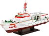 Умален модел на спасителен кораб Hermann Marwede. Hermann Marwede е един от най-модерните кораби от този тип в света. Със своите 46 m, той е най-големият океански спасителен кораб, който някога е бил на служба в DGzRS (Deutsche Gesellschaft zur Rettung Schiffbrüchiger, Германска морска служба за издирване и спасяване). Корабът е построен през 2003 година от корабостроителницата Fassmer-Werft в гр. Berne/Motzen (Weser), Германия, като част от дългогодишната програма на службата за посрещане на XXI век с достатъчен брой надеждни кораби за издирване и спасяване на бедстващи хора в открито море. Корпусът на кораба е ... |