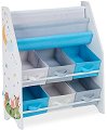 Етажерката на GINGER HOME е идеално решение за подреждане на играчките и книжките в детската стая. Тя разполага с 2 текстилни рафта, на които да наредите детските книжки, така че мъничето да може да вижда корицата им и лесно да си избира измежду тях. А в долната част са предвидени 6 текстилни кутии, в които може да организирате любимите играчки и аксесоари. Кутиите се закрепват за рамката под ъгъл, така че детето да може да вижда лесно вътре в тях. Те могат да се вадят изцяло, за самостоятелно ползване. Височината и дизайнът на етажерката я правят лесна за използване, така че да насърчава детето да се грижи за ... |