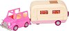 Автомобилът с каравана от "Battat" е оборудван с всичко необходимо, за да бъде почивката незабравима. В комплекта са включени над 30 фигурки - храни, напитки и обзавеждане. Едната страна и тавана на караваната се отварят. Отваряйки ги, детето ще се наслади на уютно и добре оборудвано кътче, с което да си играе дълги часове. То ще може също да мести всеки елемент от комплекта както пожелае. За още по-интересни и вълнуващи игри може да комбинирате комплекта с фигурките и останалите къщи с аксесоари от същата серия. Важно! Фигурките на животни показани на допълнителните снимки, може да закупите отделно. ... |