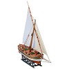 Умален модел на ветроходна лодка за превоз на товари - Bregante Leudo Mediterraneo. Лодката може да пренася товари с тежест до 15 - 20 тона и 15 метра дължина. Оригинално описание: The origin of the Leudo are rather uncertain. According to suppositions probably having a content of truth, the Leudo comes from a type of medieval boat with two masts inclined towards the prow with lateen sails. It should afterwards have lost the foremast, replaced by a bowsprit with jibs, making the manoeuvres easier. The hull has a characteristic egg shape with a very accentuated bending weather conditions, unbearable even for stronger ...