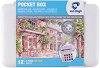 Акварелните бои от серията Van Gogh на Royal Talens се отличават с брилянтни, прозрачни и интензивни цветове с висока сила на оцветяване. Повечето цветове са оценени с най-високата степен на светлоустойчивост +++ (100+ години при музейни условия), като няколко цвята са оценени само с една стъпка по-ниско от ++ (25-100 години при музейни условия). Благодарение на чистотата и равномерния вискозитет, акварелите са лесни за работа и смесване. Цветовете могат лесно да се смесват и измиват, за да се създадат изключително фини нюанси. Джобният комплект се състои от 15 цвята (12 + 3 допълнителни цвята) акварел на кубче ( ... |