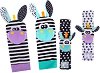 Комплектът меки бебешки дрънкалки е създаден за първите игри и открития на вашето мъниче. Той включва дрънкалки, които се закрепват лесно с велкро лента, както и разтегливи бебешки чорапки за крачета, осигуряващи удобно и сигурно прилягане. Всяко движение на ръчичките и крачетата е съпроводено от нежни дрънкащи звуци, които привличат вниманието и насърчават активната игра. Играчките са изработени от дишащи и нетоксични тъкани, без BPA и със CPC сертификат за безопасност, което ги прави напълно подходящи за чувствителната бебешка кожа. Ярките и контрастни цветове подпомагат визуалната концентрация, а разнообразните ... |