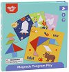 Магнитният танграм от "Tooky Toy" е създаден по модел на древната китайска игра "Танграм". Играта е подходяща за деца над 3-годишна възраст и се състои от кутия за съхранение, 7 цветни тани шаблони с предизвикателства и книжка с инструкции. Целта на играта е да се наредят различни фигури, които се определят чрез изтегляне на шаблон по желание. Таните се редят, така че да не се застъпват. ... |