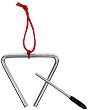 Триангелът е перкусионен, музикален инструмент от групата на металните идиофони (инструменти, създаващи звук чрез собственото си трептене). Той представлява метална пръчка, извита във формата на триъгълник с отворен край и метална палка към него. За да създава звук, инструментът трябва да виси свободно, без да се опира в нещо. Той се прикрепя към показалеца на изпълнителя, посредством корда, въженце или метална поставка, с щипка към друг инструмент (или пулт) или се слага на метална стойка, предназначена само за него. Създаването на звук става, когато по него се удари с тънка, издължена метална палка, която има ... |