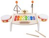 Музикалните заложби е хубаво да се насърчават от най-ранна възраст. Точно затова музикалната маса от Classic World ще зарадва вашето дете! Тя е подходяща за малчугани над 3-годишна възраст. Представлява маса, която разполага с 6 различни музикални инструмента - 2 барабана с 2 палки, ксилофон, 2 вида звънчета, триангел и гуиро. Елементите са изработени от метал и дърво, боядисано с безвредни бои на водна основа. С тяхна помощ, децата ще развиват своето усещане за ритъм, своя слух и умение да боравят с музикални инструменти. Масата е с размери 50 / 29 / 27 cm. ... |