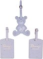 Табелките за багаж са част от колекцията Bambino, в която ще откриете още бебешки и детски продукти по темата. ... Табелките за багаж на Widdop Bingham са практично и стилно решение за семейни пътувания. Комплектът съдържа 3 табелки - за мама, татко и бебе, всяка от които е изработена от изкуствена кожа в неутрални тонове и декорирана с фини звездни мотиви и релефни надписи. Всяка табелка разполага с регулируем ремък с катарама, с който лесно се прикрепя към куфар или пътна чанта. Комплектът е опакован в стилна кутия и е чудесен избор за подарък за ново семейство или първо пътуване с бебе. ... |