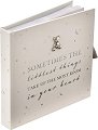 Фотоалбумът е част от колекцията Bambino, в която ще откриете още бебешки и детски продукти по темата. ... Фотоалбумът Sometimes на Widdop Bingham е елегантен начин да запазите най-скъпите спомени от първите години на вашето дете. Изработен е от твърд картон с матово покритие и е декориран със сребристи детайли, включително надписа надписа Sometimes the littlest things take up the most room in your heart (Понякога най-малките неща заемат най-голямо място в сърцето ти) - трогателен акцент, който придава на албума мек и нежен характер. Кориците се завързват с панделка, която осигурява елегантно и практично затваряне. Във ... |