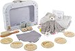 С одеяло, играчка, чорапки, бандана и четка за коса