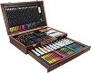 Комплектът за рисуване Maaleo от Iso Trade ще зарадва всяко дете, което обича да твори и да се забавлява. Той съдържа 129 части с богата селекция от цветове и творчески материали, подредени в удобен дървен куфар с размери 38 / 23.5 / 8 cm. Богатото съдържание позволява реализиране на разнообразни творчески идеи. Отделните отделения в куфара осигуряват лесен достъп до материалите, защитават ги и поддържат всичко подредено. Компактният размер и удобната дръжка го правят подходящ за ползване както у дома, така и в училище или на открито. ...